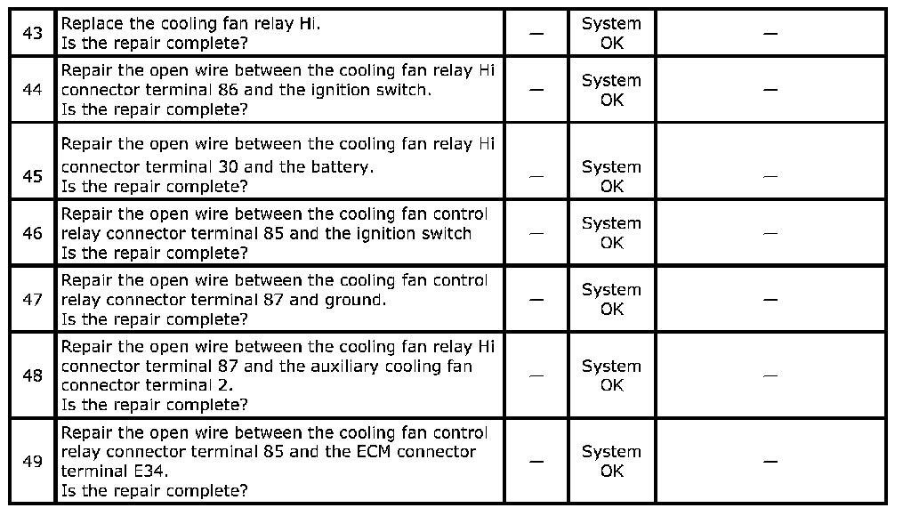 Engine Cooling Fan Circuit Check - Dual FanEngine Cooling Fan Circuit Check - Dual Fan:
