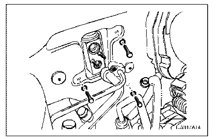 4. Install the heater/air distributor case assembly screws at the side of evaporator through the firewall from the engine compartment side.
