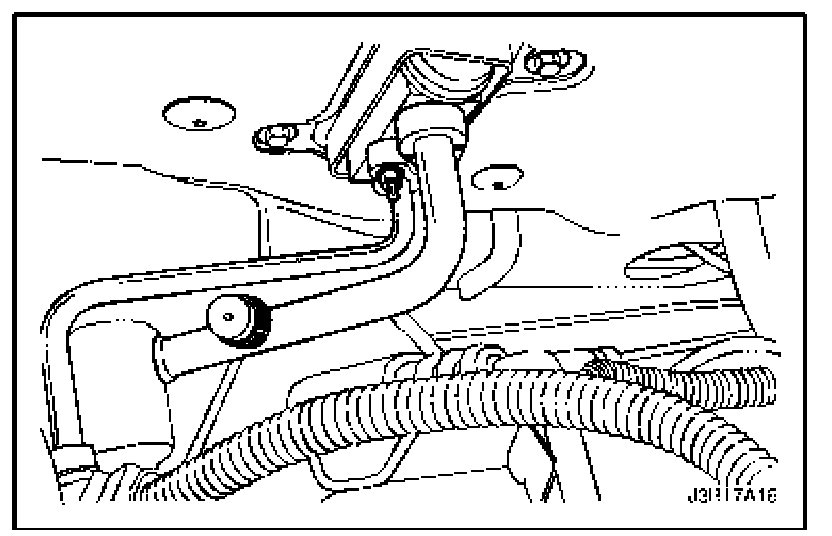 5. Install the heater/air distributor case assembly screws at the side of the heater core pipes through the firewall from the engine compartment side.