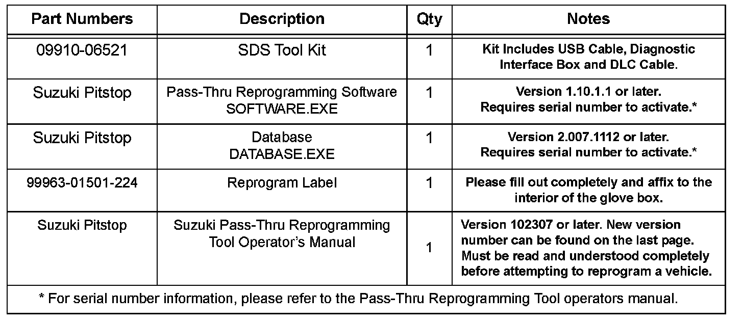 3. Following the procedure outlined in the Suzuki Pass-Thru Reprogramming Tool Operator's Manual, download and install the Pass-Thru Reprogramming Software "SOFTWARE.EXE" in your PC, (if it is not already installed).