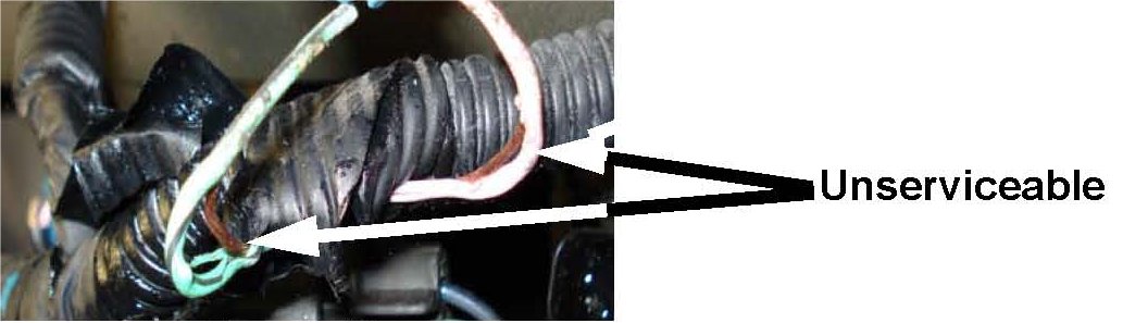 ^ If condition "A" exists, carefully inspect the wiring harness insulation for further damage and if no damage is found, replace the affected electrical tape.