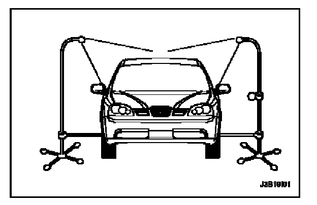 Waterleak DiagnosisThe repair of waterleaks in the body requires proper testing and diagnosis. Repair waterleaks by adjusting the misaligned parts and using the proper repair materials. First, determine what conditions cause the leak. For example, the leak may occur only when the vehicle is parked on an incline, or water may appear only in the spare tire compartment. Second, test the area for the source of the leak using the following testing methods. If the general leak area is found, determine the exact entry point of the leak by using a water hose or an air hose. If the general leak area is not obvious, use the watertest stands to determine the area of the leak. It may be necessary to remove some interior trim panels or some parts in order to locate the leaks.