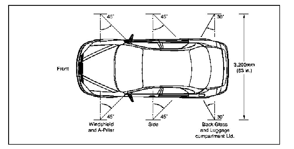 4. If the local water pressure does not allow the required water pressure of 155 kPa (22.5 psi), move both stands closer to the vehicle so that the water spray overlaps.