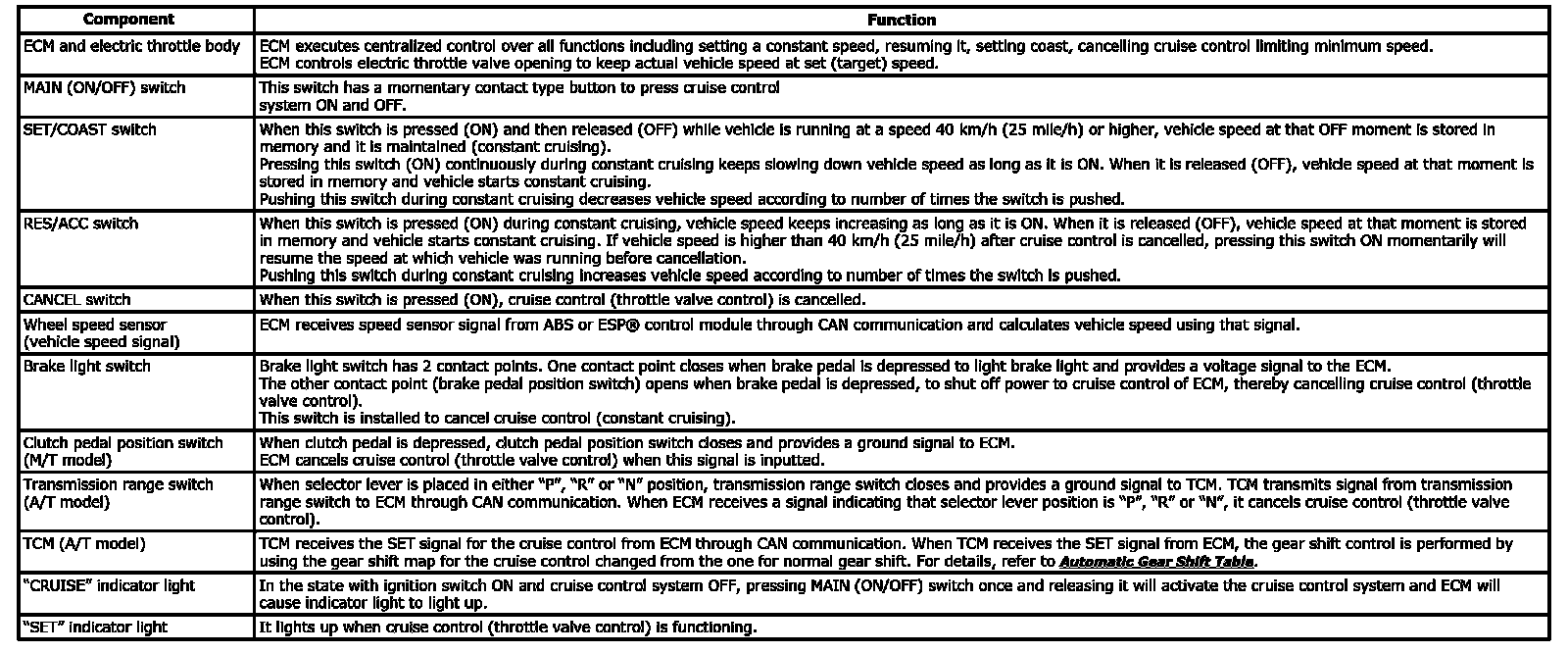 Components And Functions Of Cruise Control System: