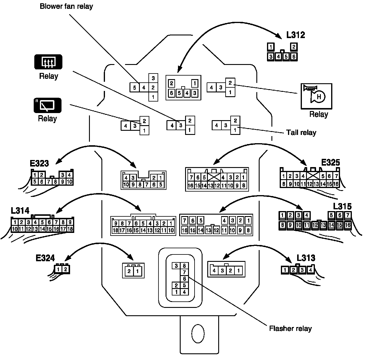 Junction Block (J/B) Connector / Fuse Layout Relay side: