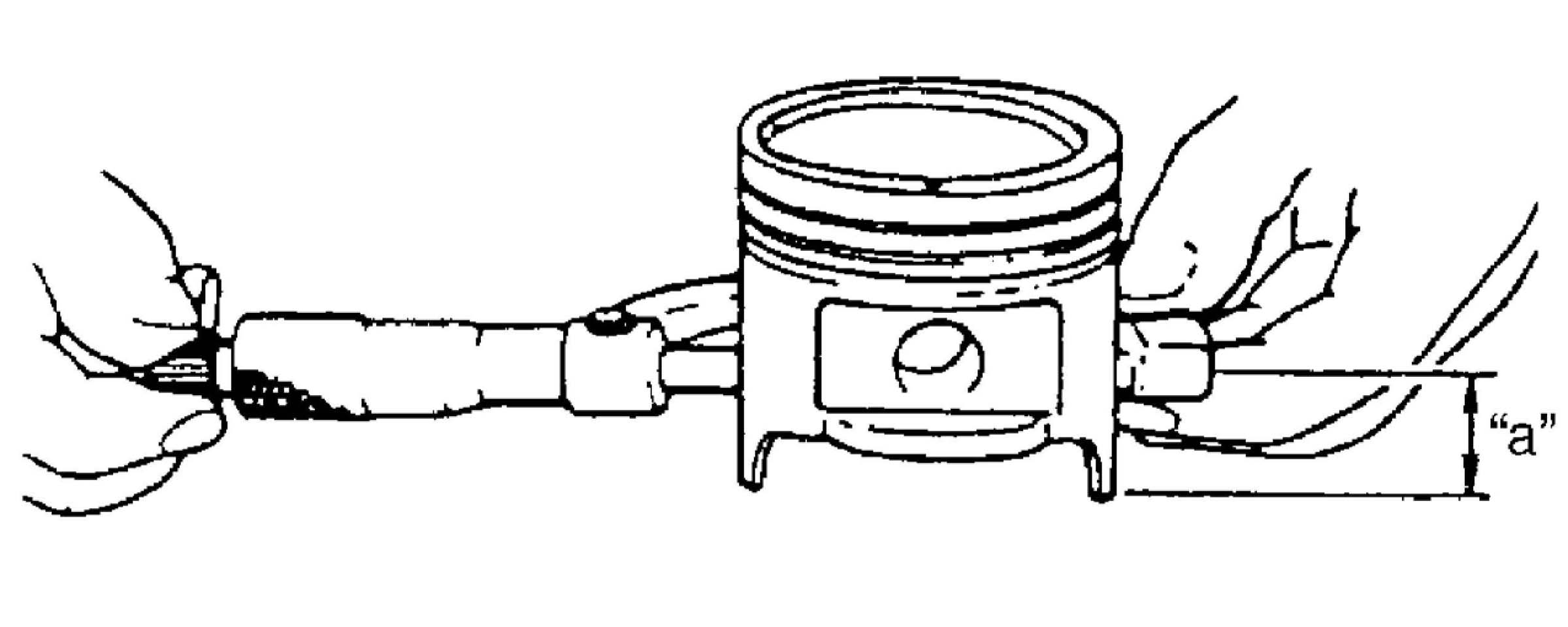 As indicated in figure, piston diameter should be measured at a position 26.5 mm (1.04 in.) ("a") from piston skirt end in the direction perpendicular to piston pin.