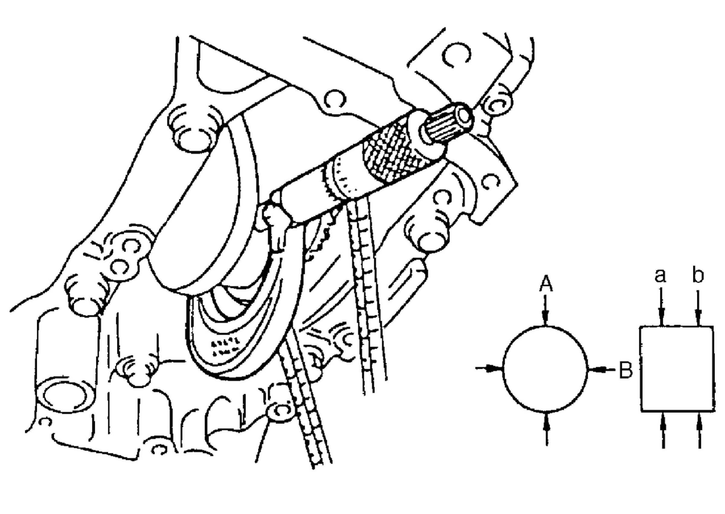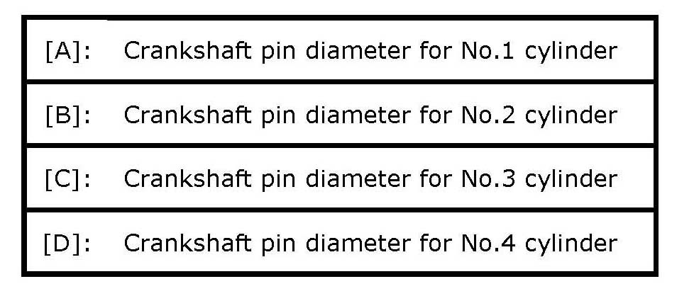 b. Next, check crank pin diameter. On crank web of No. 3 cylinder, four alphabets are stamped as shown in the figure.