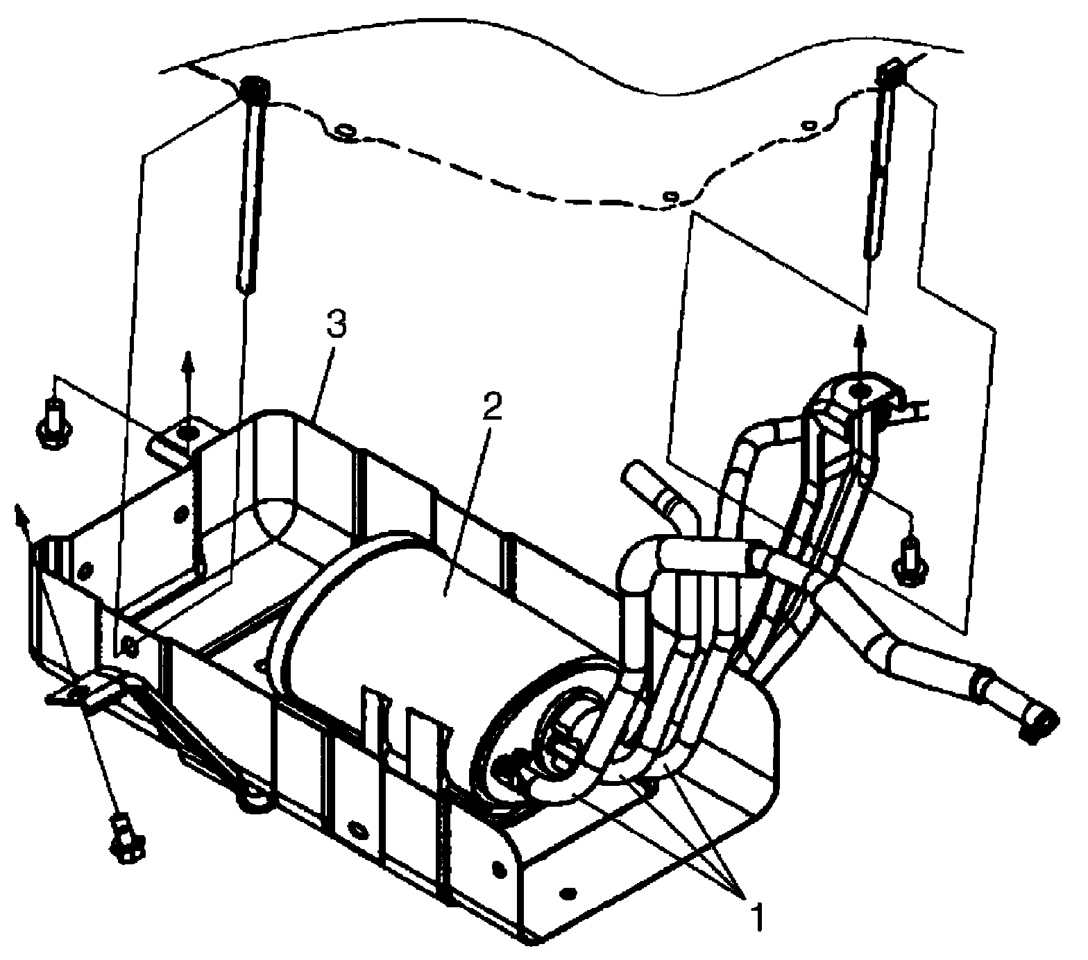 b. Remove EVAP canister bracket (3) with EVAP canister from vehicle body.