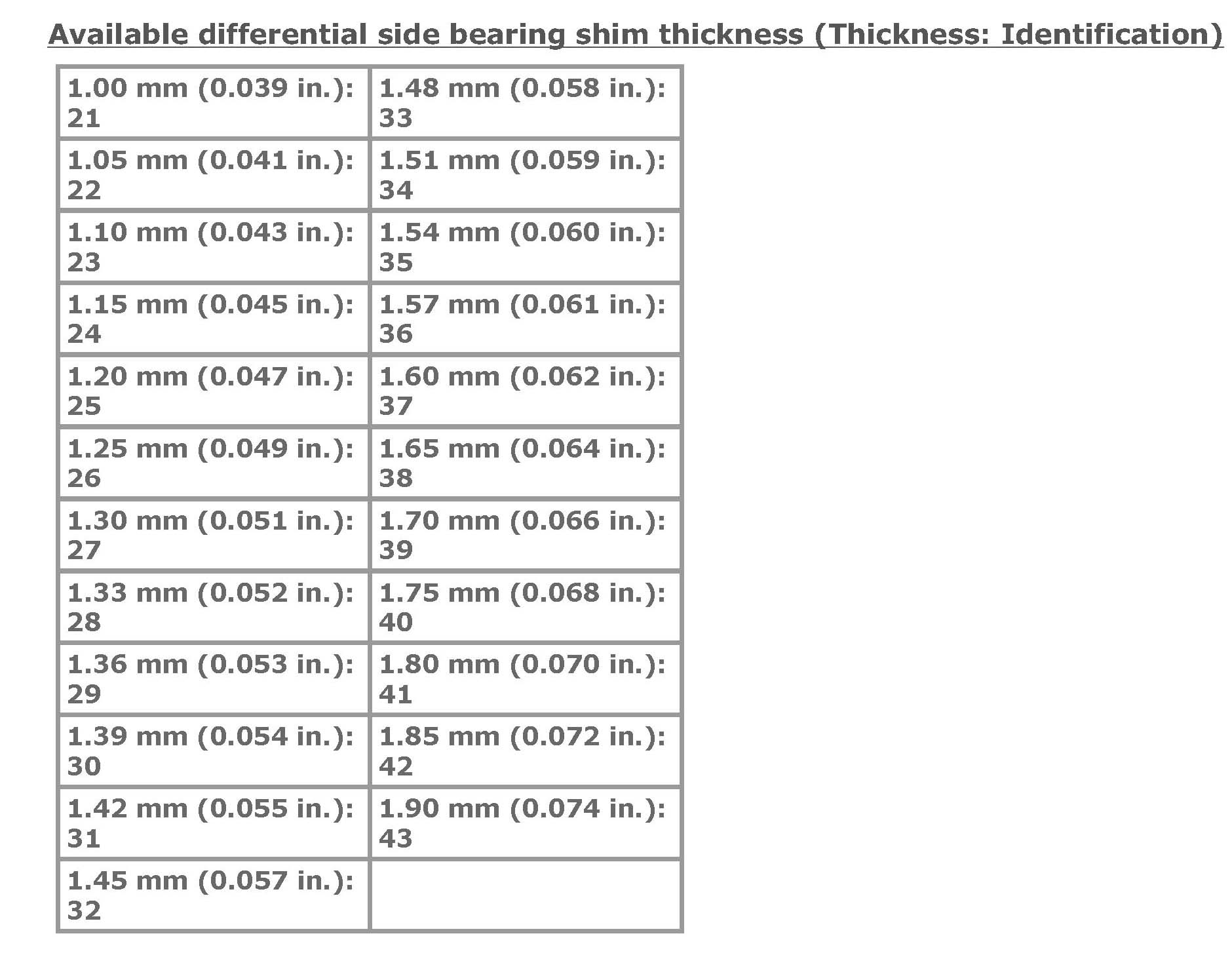 Starting torque of differential assembly: 0.7 - 1.2 Nm (0.07 - 0.12 kgf-m, 0.506 - 0.868 ft. lbs.)