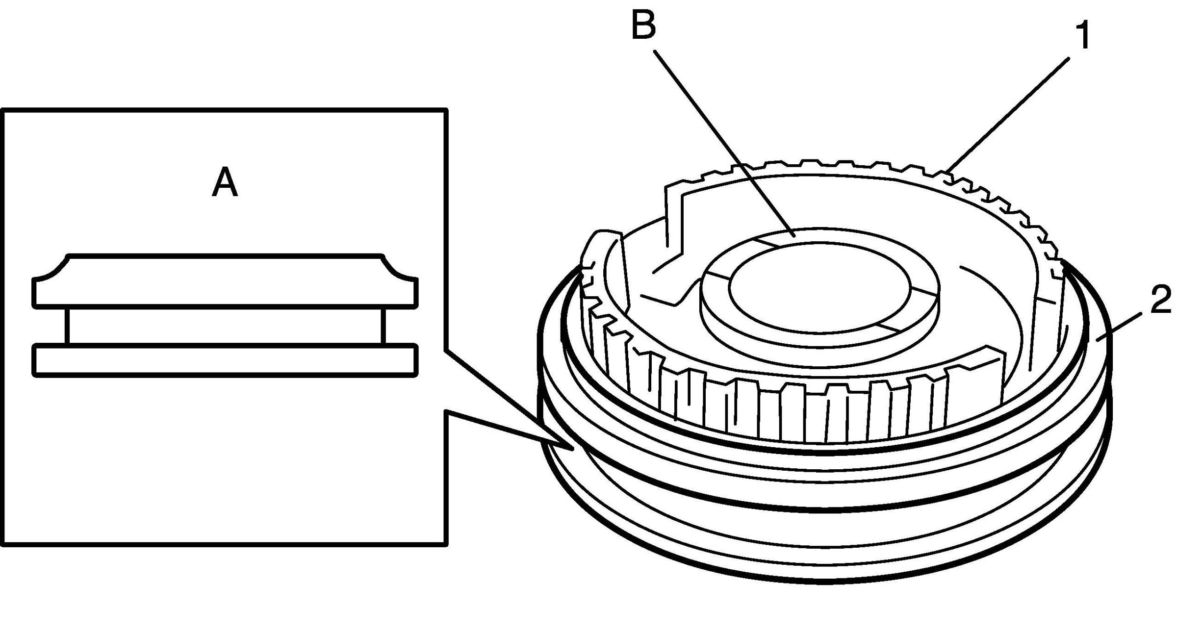 c) Install synchronizer ring (1) to hub (2) in specified direction as shown in figure.