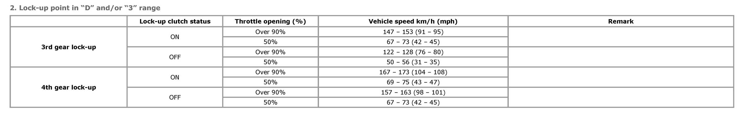 2. Lock-up point in "D" and/or "3" range