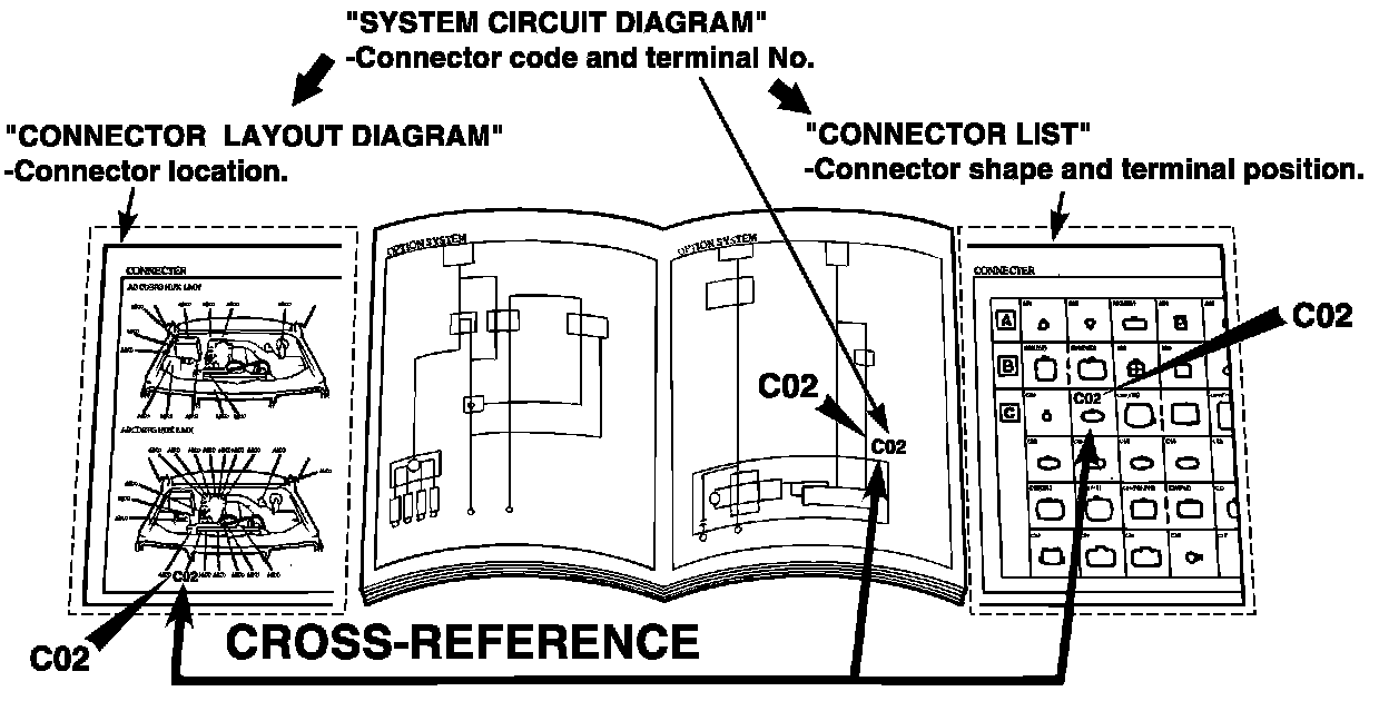 How to Read Connector Codes and Terminal Nos.1. Connector code/Terminal No./Terminal layout