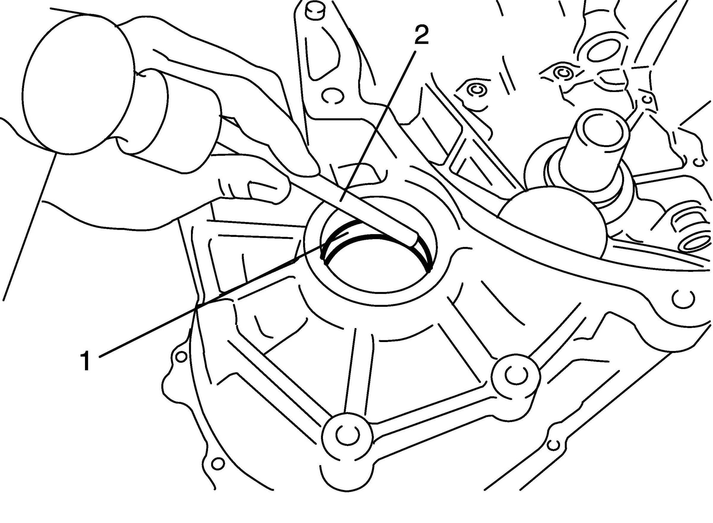 2. Remove differential side bearing outer race (1) using brass bar (2), if necessary.