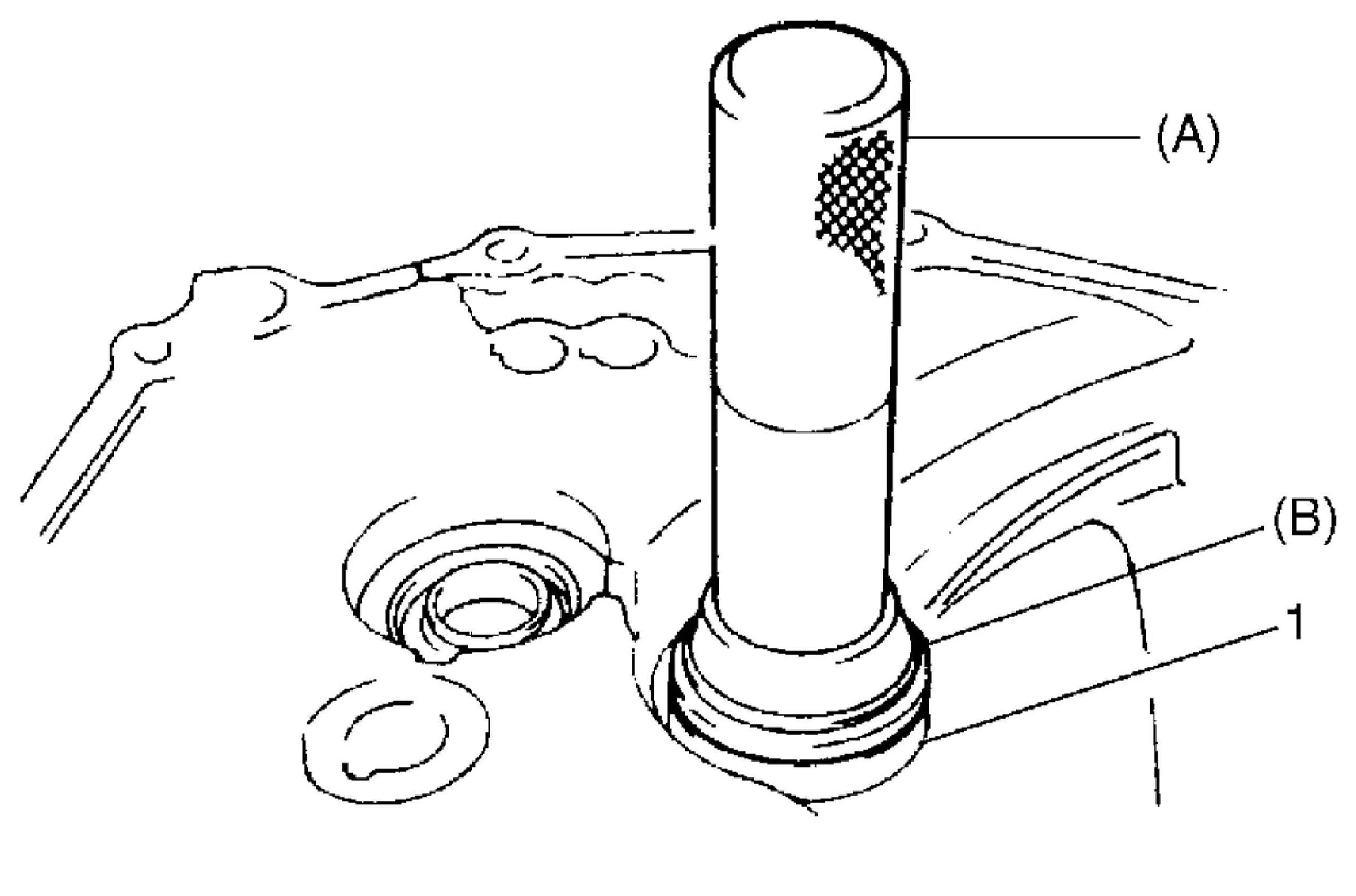2. Install countershaft right bearing outer race (1) by using special tools and hammer.