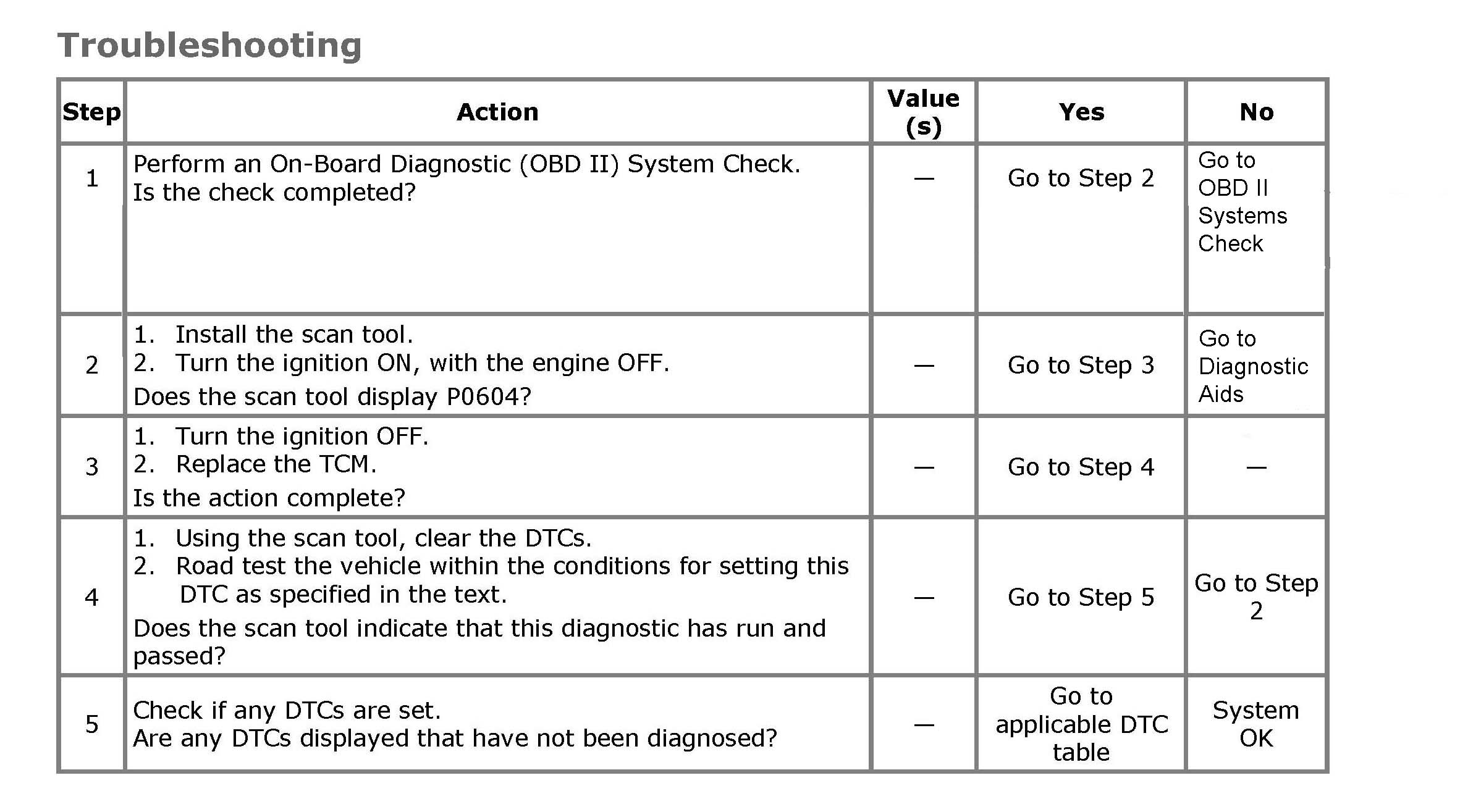 When DTC P0604 sets, the replacement of TCM is recommended.
