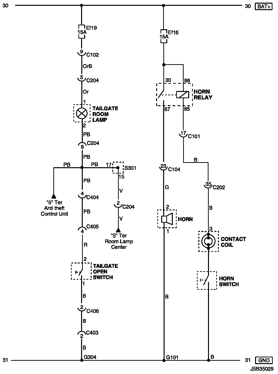 (For STATION WAGON Model)Trunk/Tailgate Open Switch, Trunk Latch Switch, Trunk Room Lamp and Horn Circuit Wiring Diagram (For STATION WAGON Model):