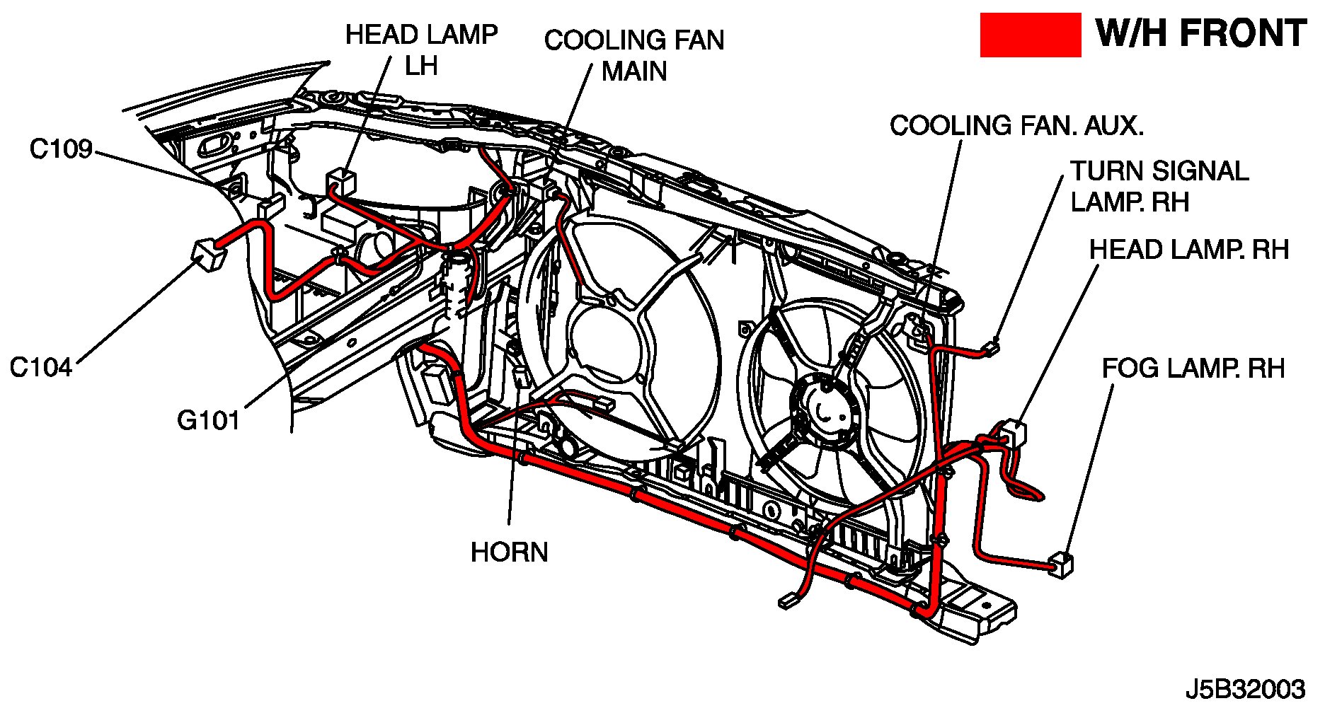 Position of Connectors and Grounds - W/H Front: