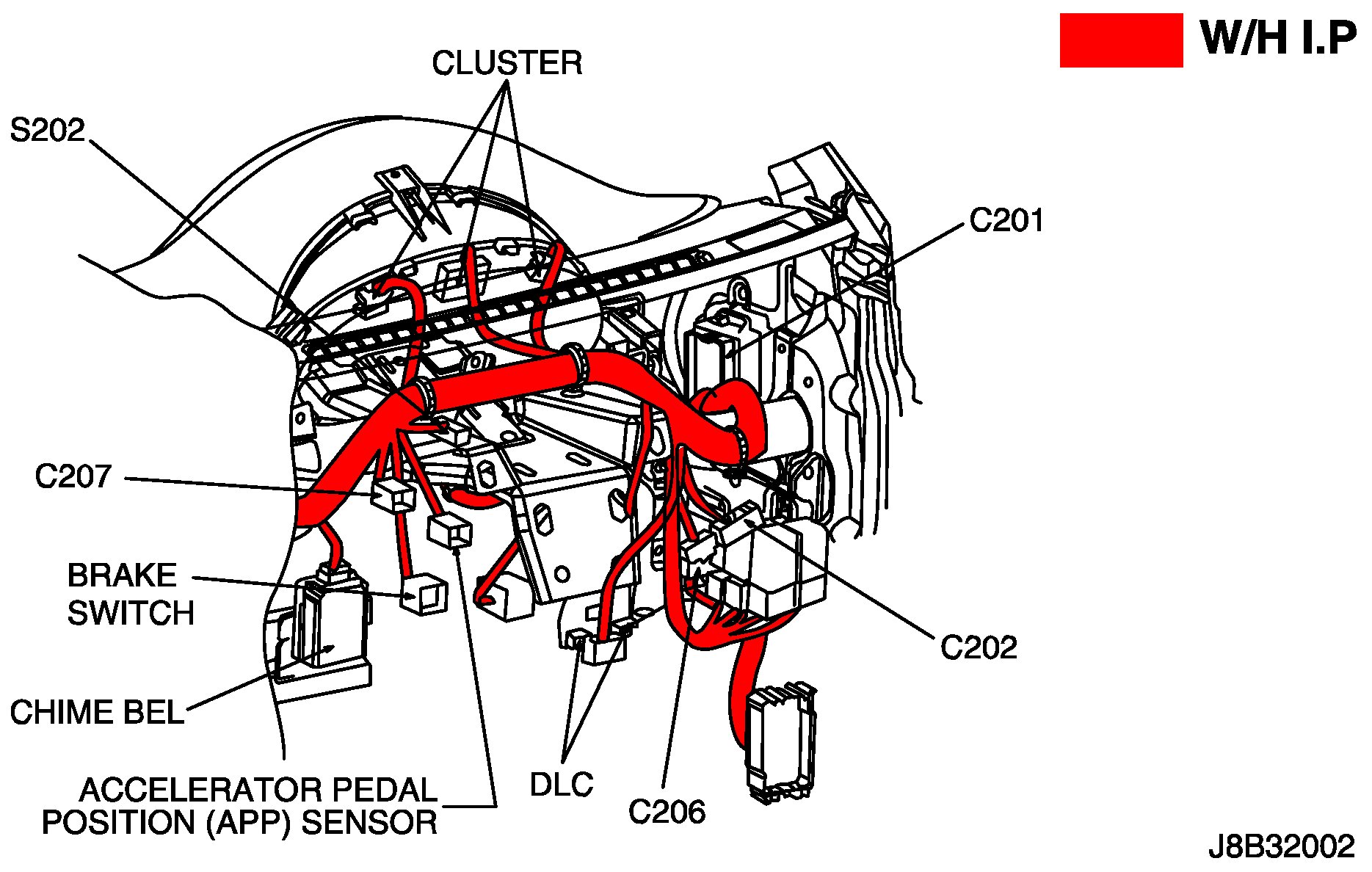 Position of Connectors and Grounds - W/H Instrument Panel: