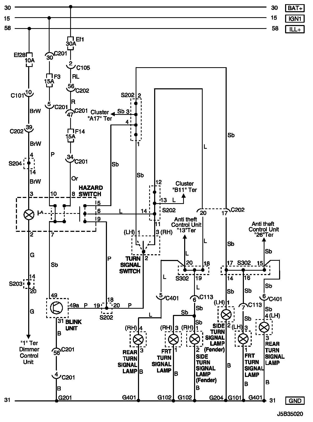 (For HATCHBACK Model Canada Only)Hazard and Turn Signal Lamp Circuit Wiring Diagram (For HATCHBACK Model Canada Only):