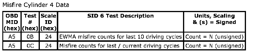 Misfire Cylinder 4 Data: