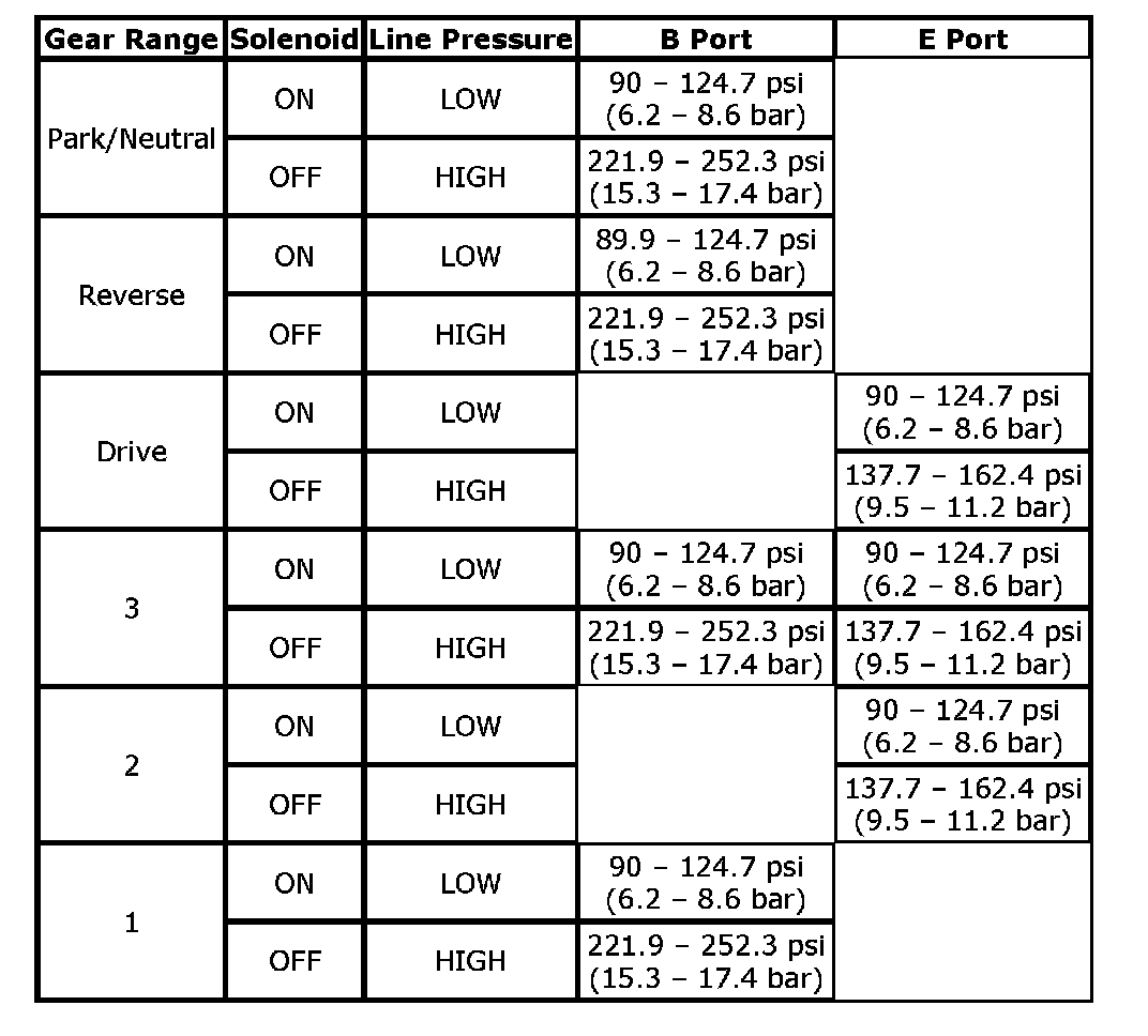 Line Pressure Specification