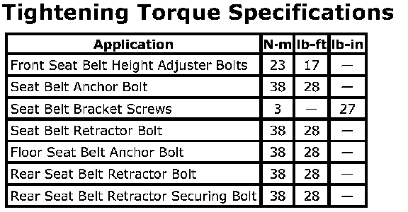 Tightening Torque Specifications: