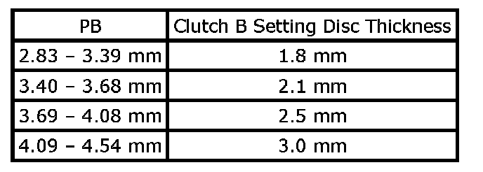 3. Find the Clutch B setting disc (clutch plate) thickness. Refer to the below table.