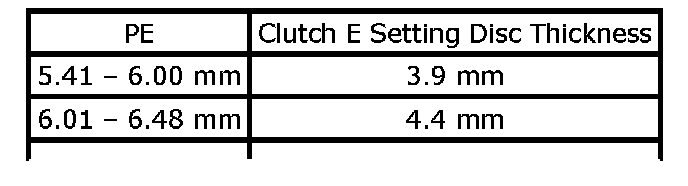 3. Find the clutch E setting disc (clutch plate) thickness. Refer to the below table.