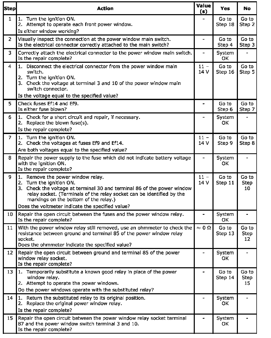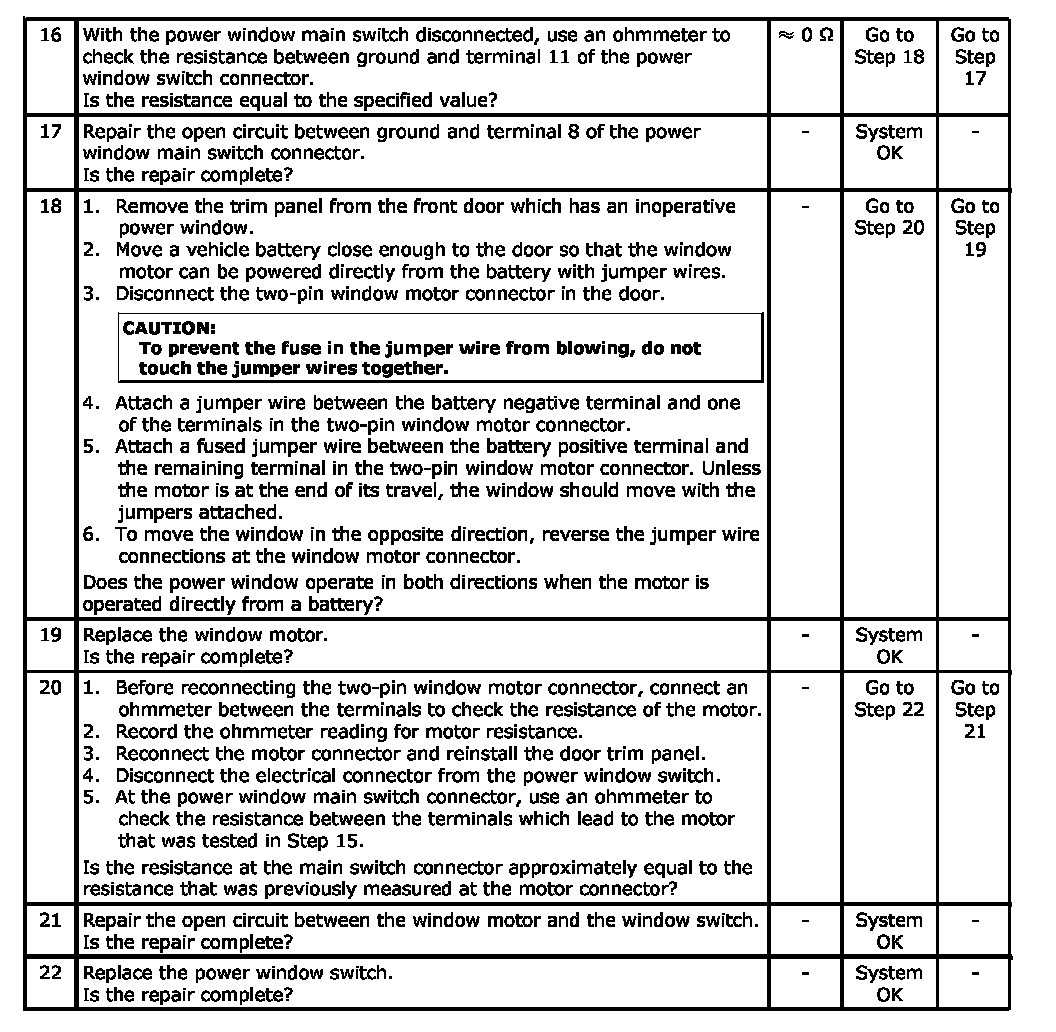 System with Front and Rear Power Windows, One or Both Front Windows Are InoperativeStep 16 - 22: