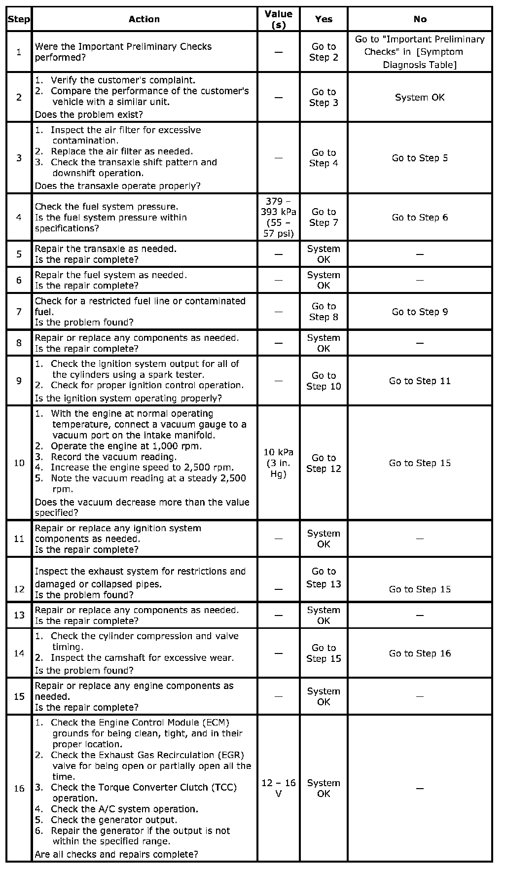 The engine delivers less than expected power. There is little or no increase in speed when the