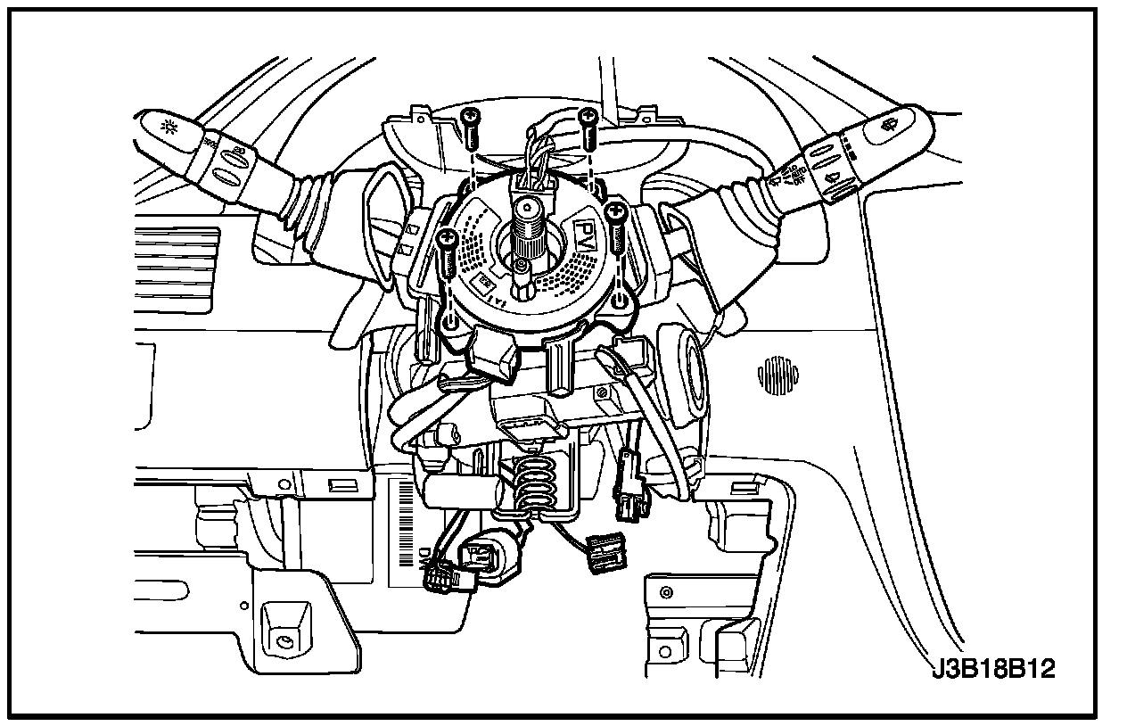 ^ Tightening torque of the clock spring screw is 3 Nm (27 lb.in).