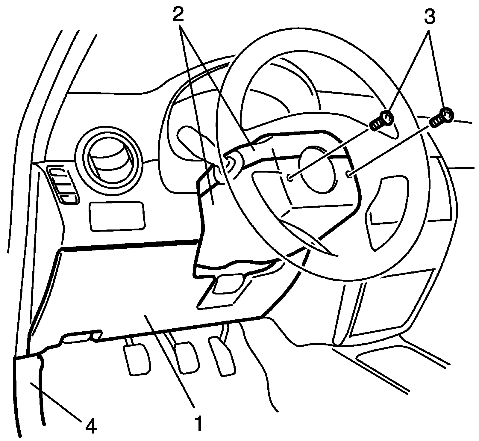 4. Turn steering wheel to remove steering column cover screws (3).