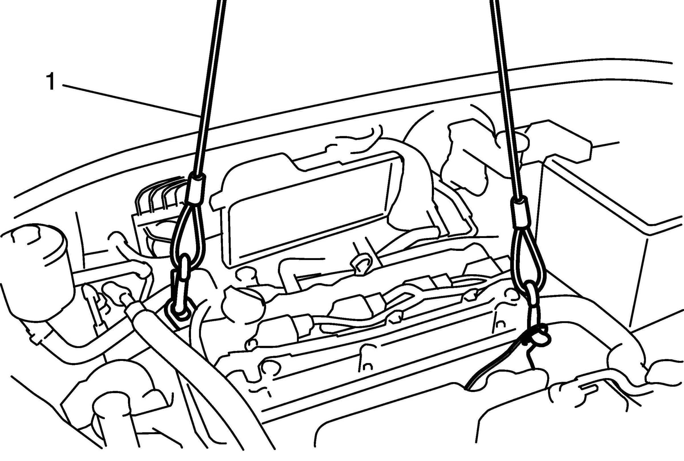 12. Support engine assembly by using chain hoist (1).