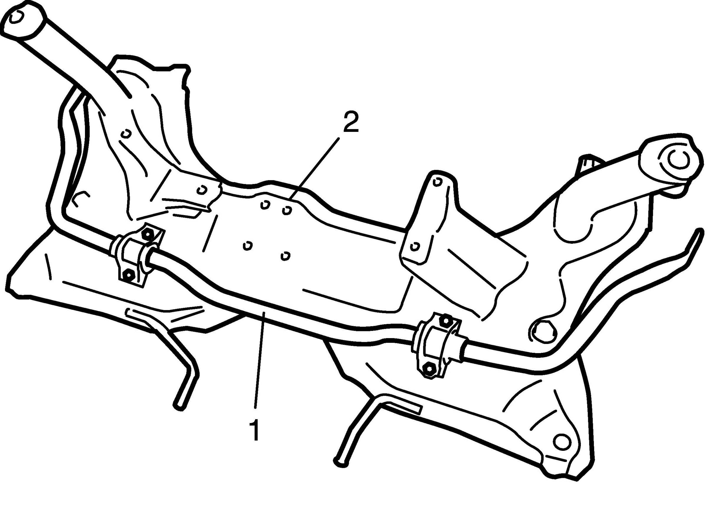 17. Remove stabilizer bar (1) with bushing from suspension frame (2).
