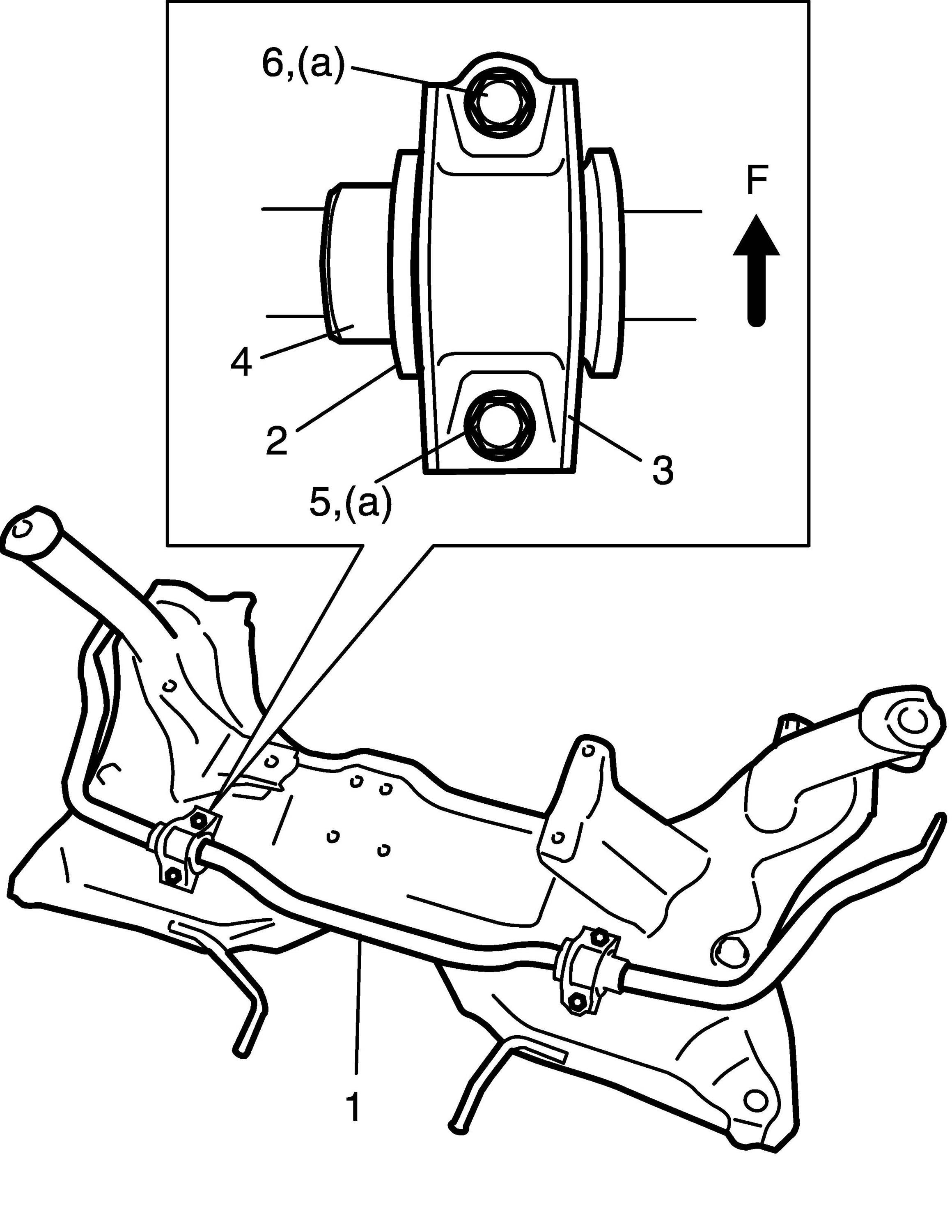 NOTE: Tighten stabilizer bar mounting bracket rear bolt (5) after front bolt (6).