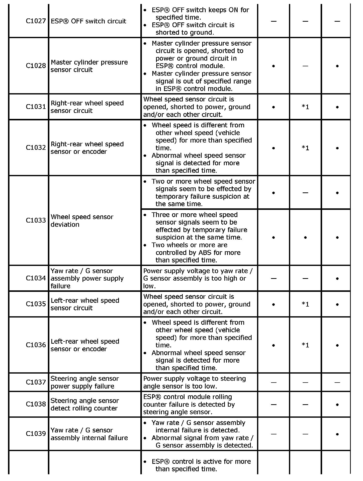 ^ *1: If three or more wheel speed sensor are defective, EBD warning light are lit.