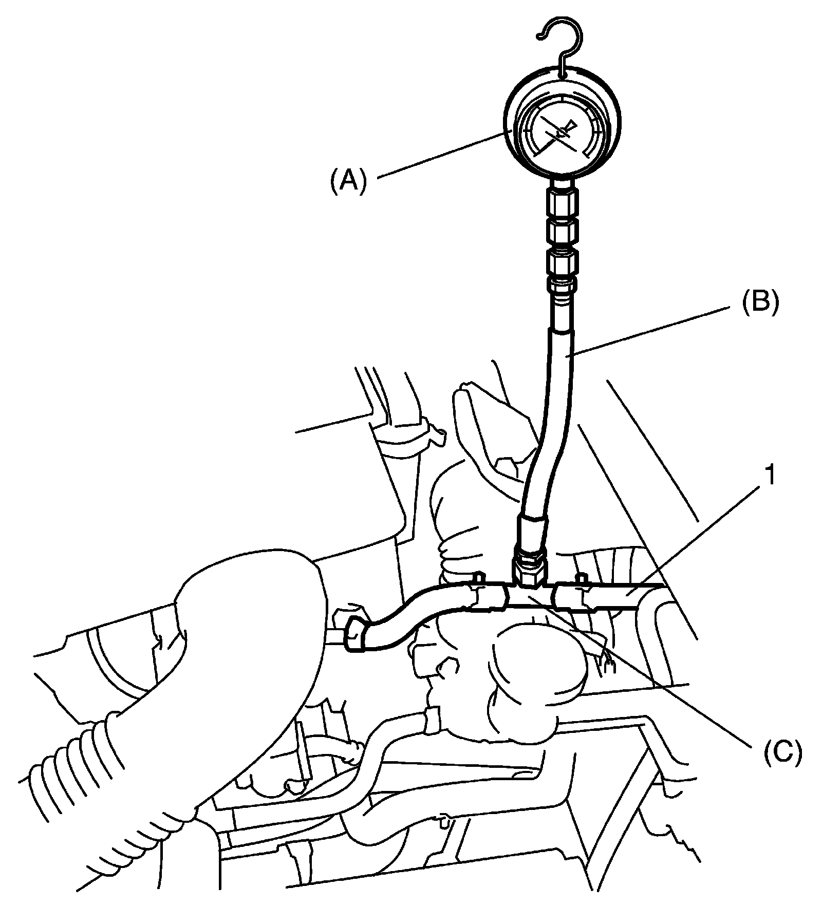 c. Stop engine, and measure fuel pressure at one minute after stopping.