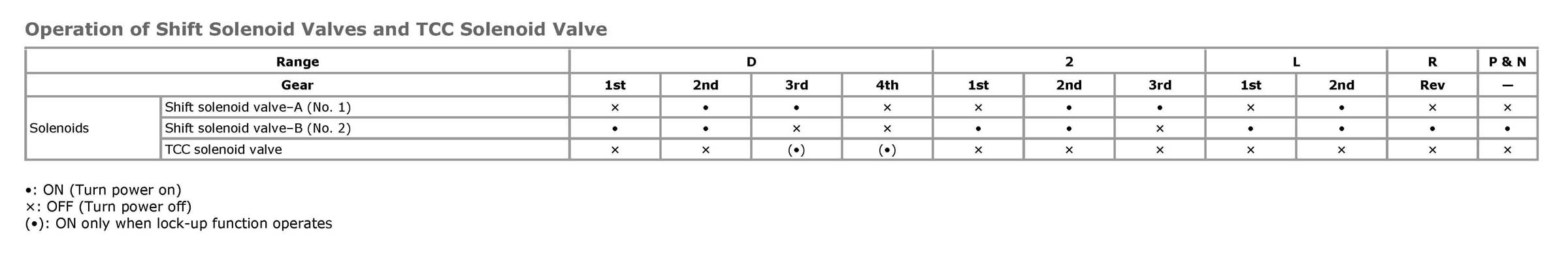 Operation of Shift Solenoid Valves and TCC Solenoid Valve
