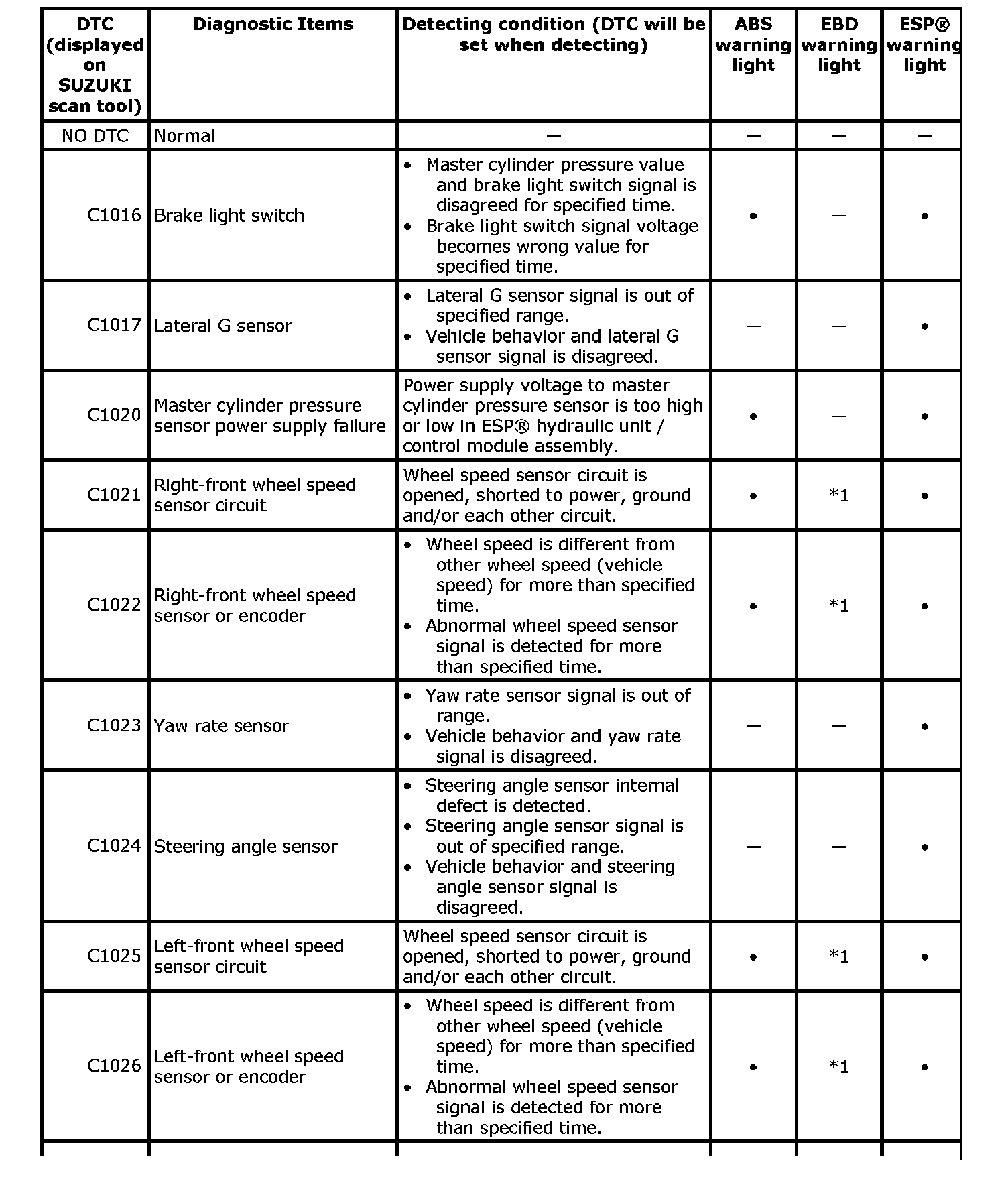 ^ *1: If three or more wheel speed sensor are defective, EBD warning light are lit.
