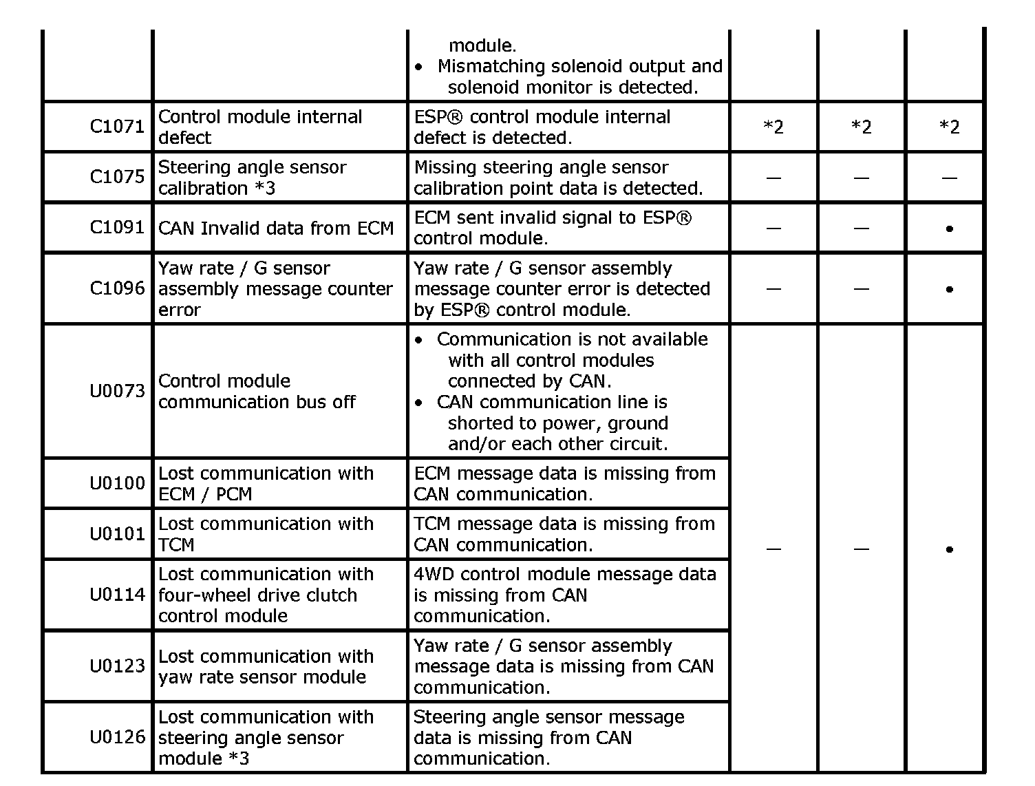 ^ *2: It is irregular whether warning lights can be lit by ESP(R) control module.