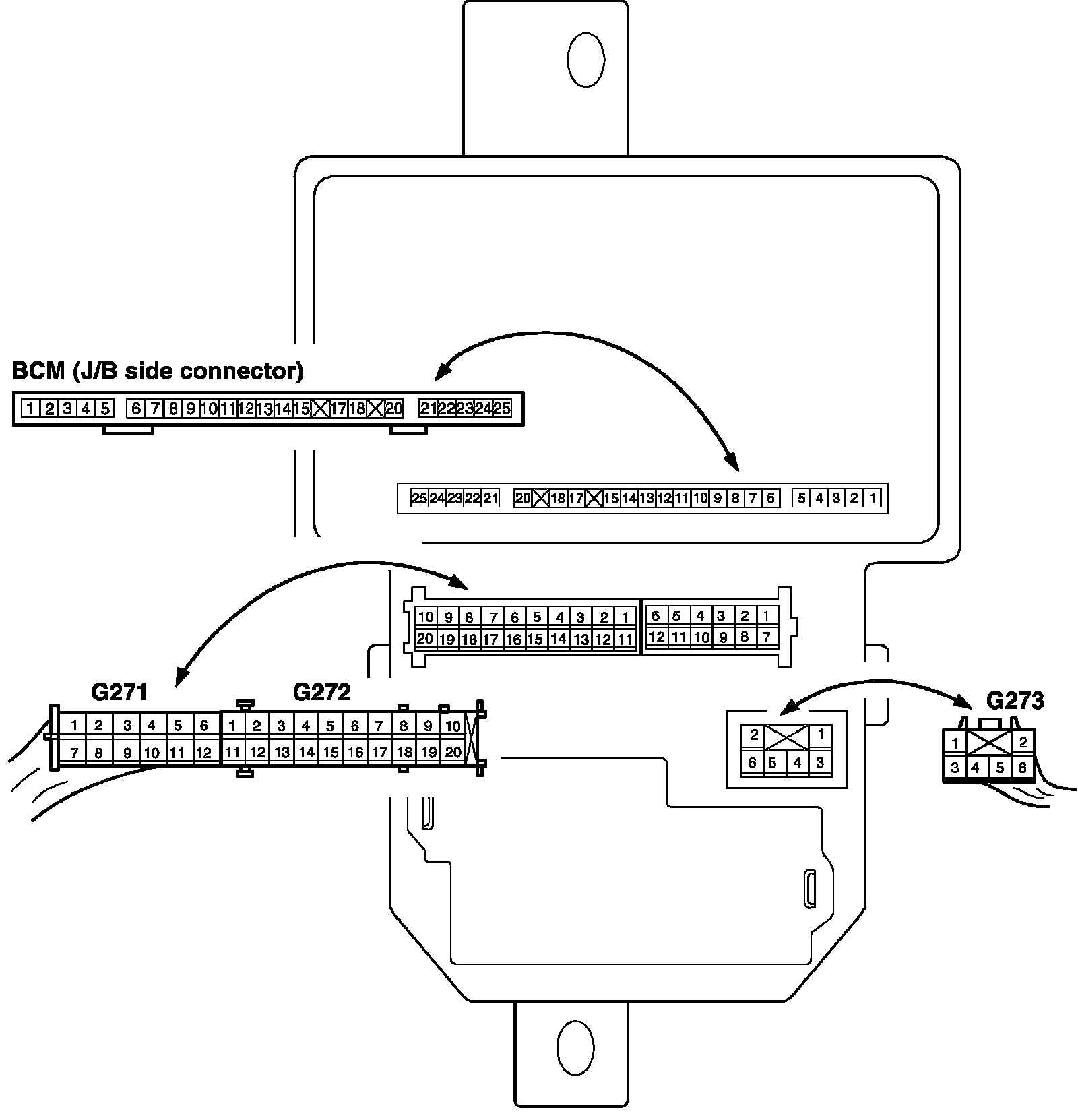 Junction Block (J/B) Connector / Fuse Layout BCM Side: