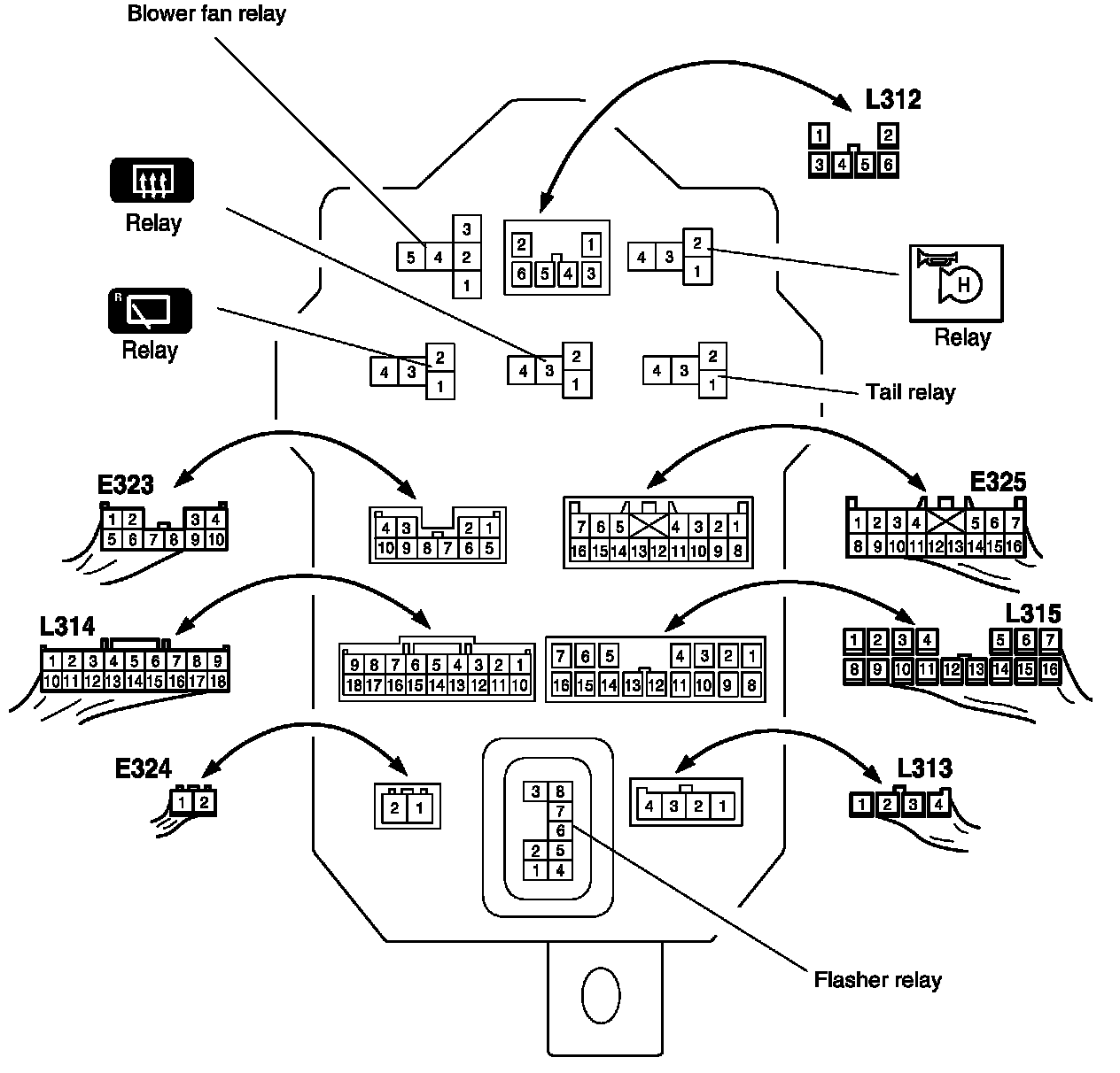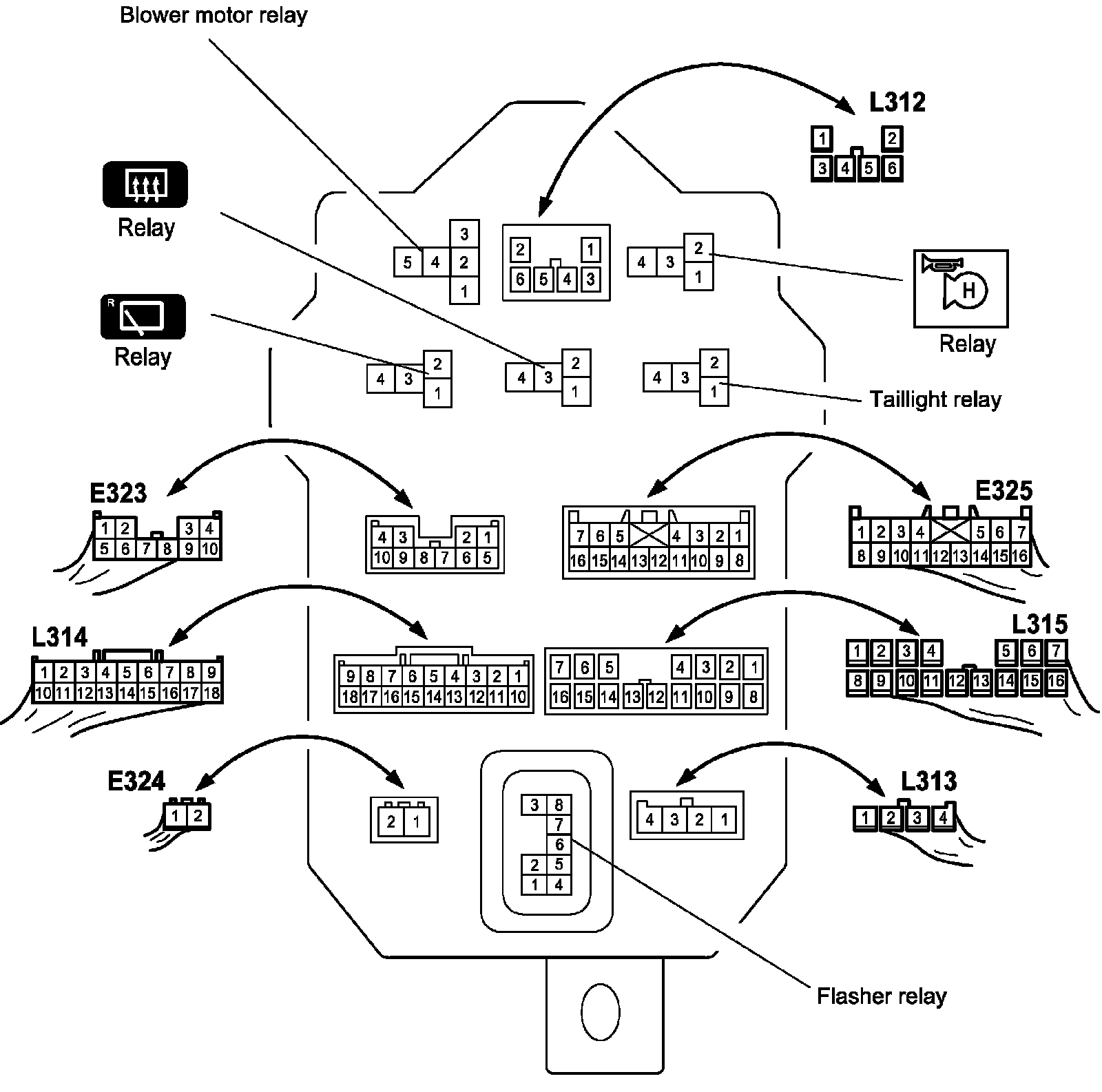 Junction Block (J/B) Connector / Fuse Layout Relay Side: