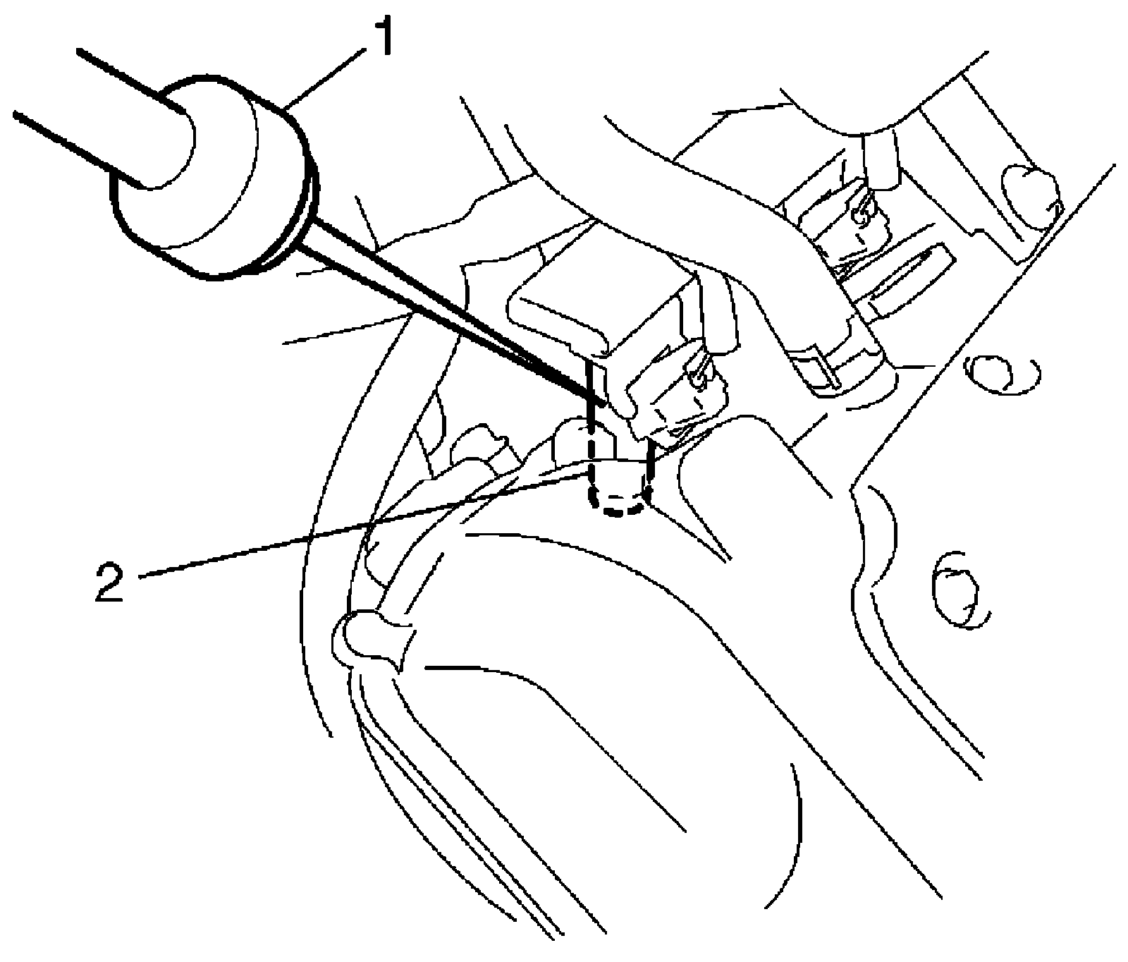 2. While listening to sound of injector (2) by using sound scope (1) or such, increase engine speed to higher than 3,000 r/min.