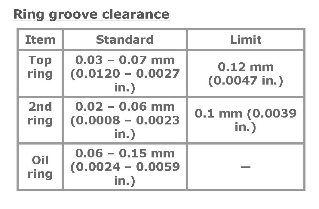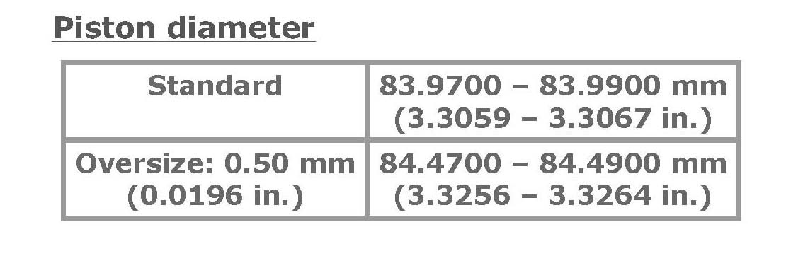 Piston clearance 0.02 - 0.04 mm (0.0008 - 0.0015 in.)