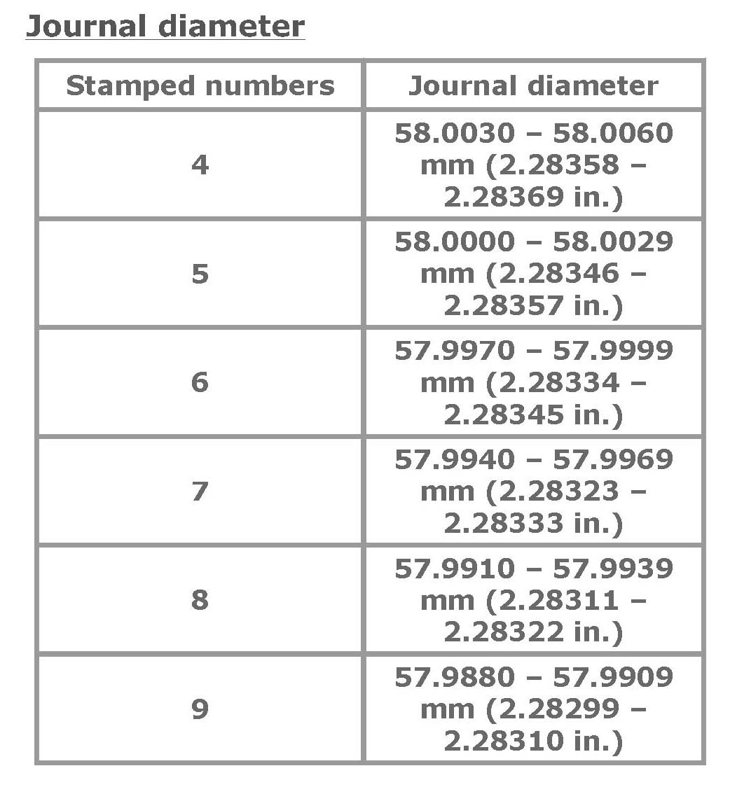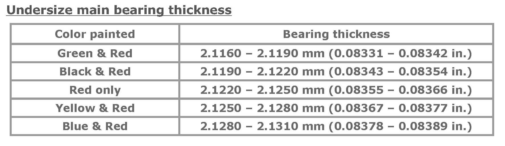 Undersize bearing specification