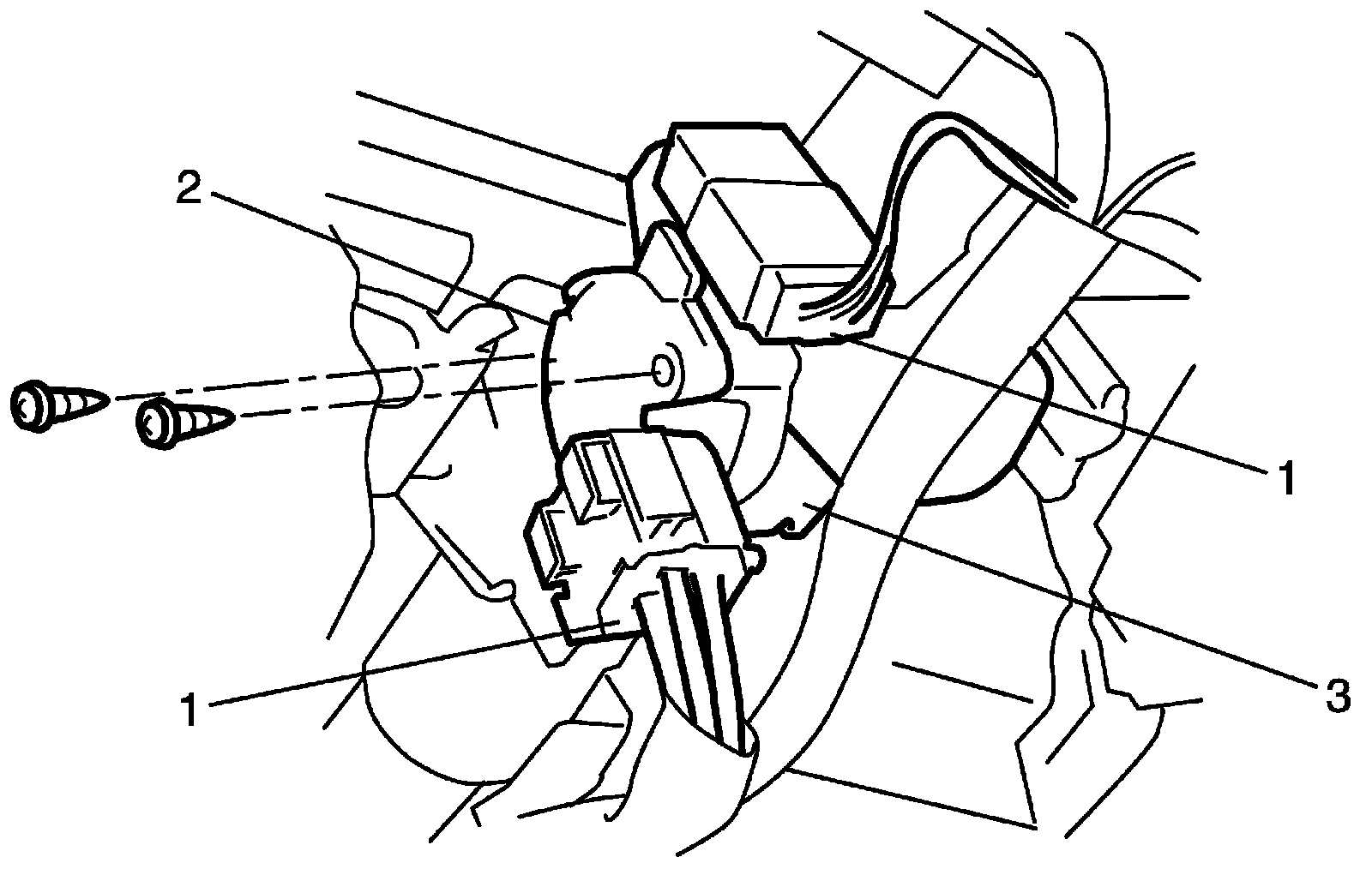 7. Remove ignition switch (2) from key cylinder (3).