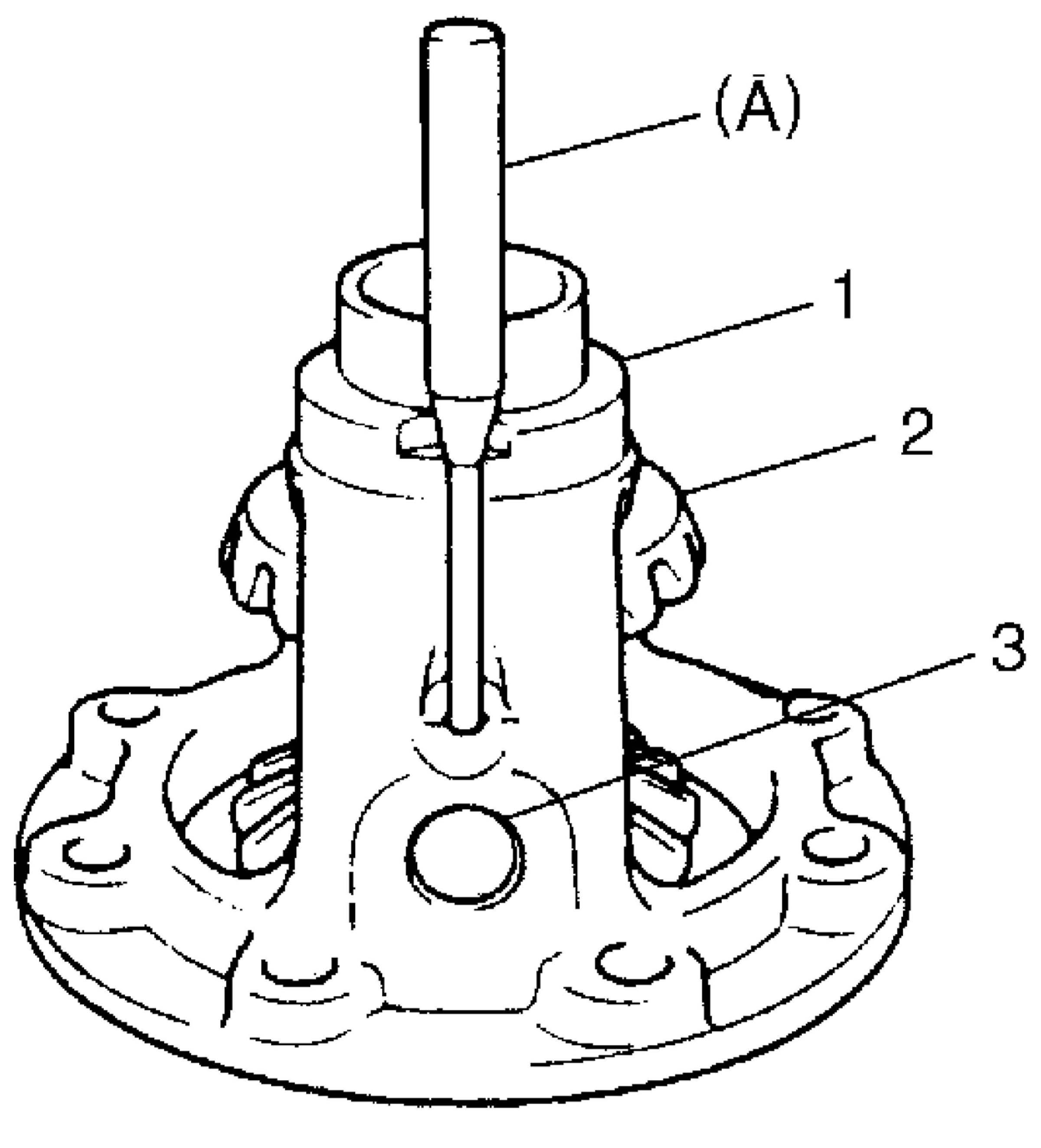 4. Drive out differential pinion shaft (3) pin by using special tool and hammer and then disassemble components parts.