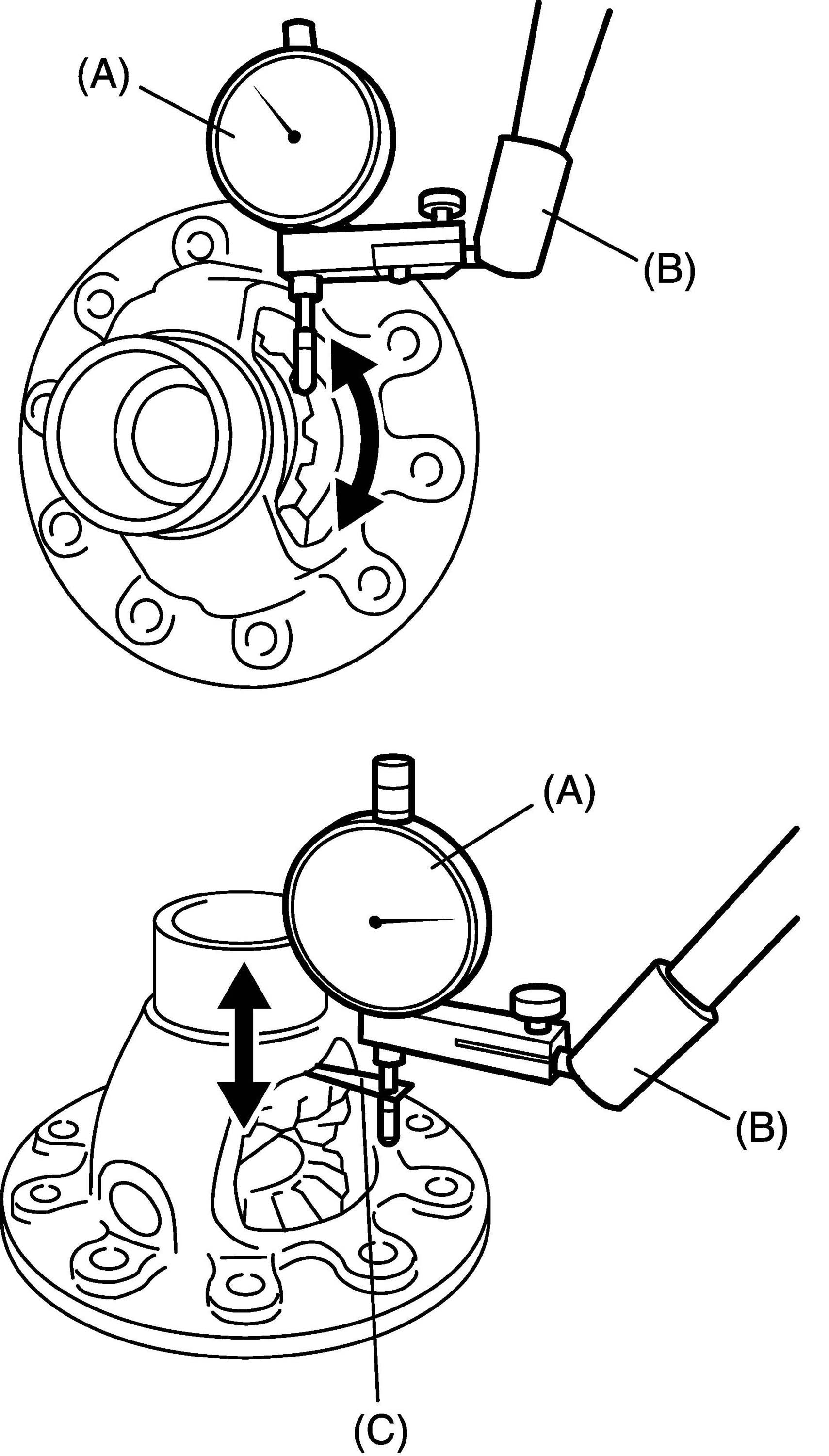 ^ Fixing differential pinion, turn side gear back and forth and read dial gauge.