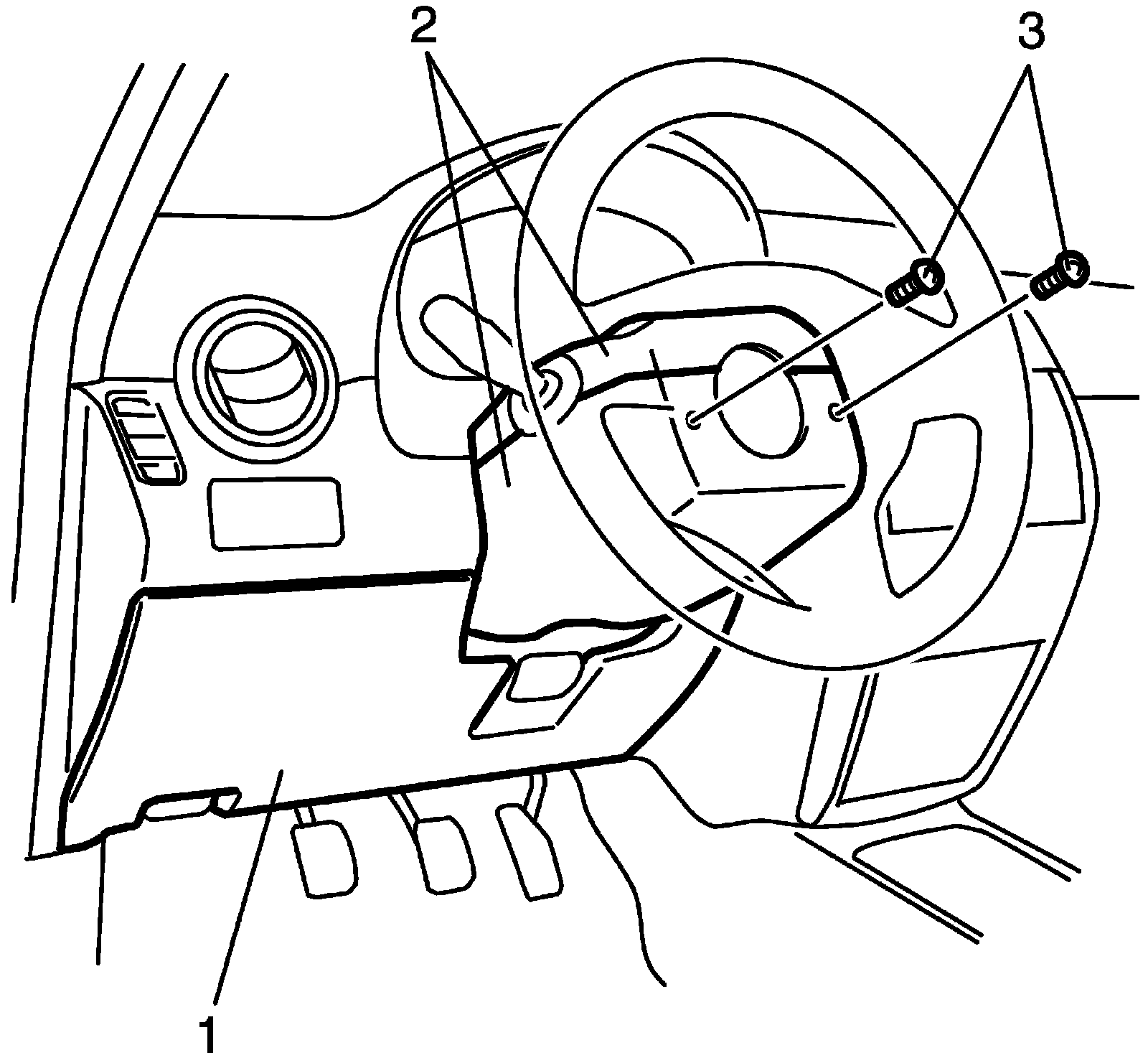 Turn steering wheel to access steering column cover rear end screws (3).