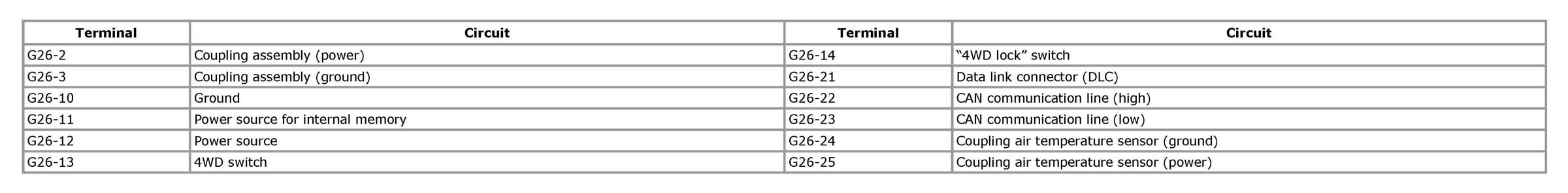 Terminal Arrangement of 4WD Control Module